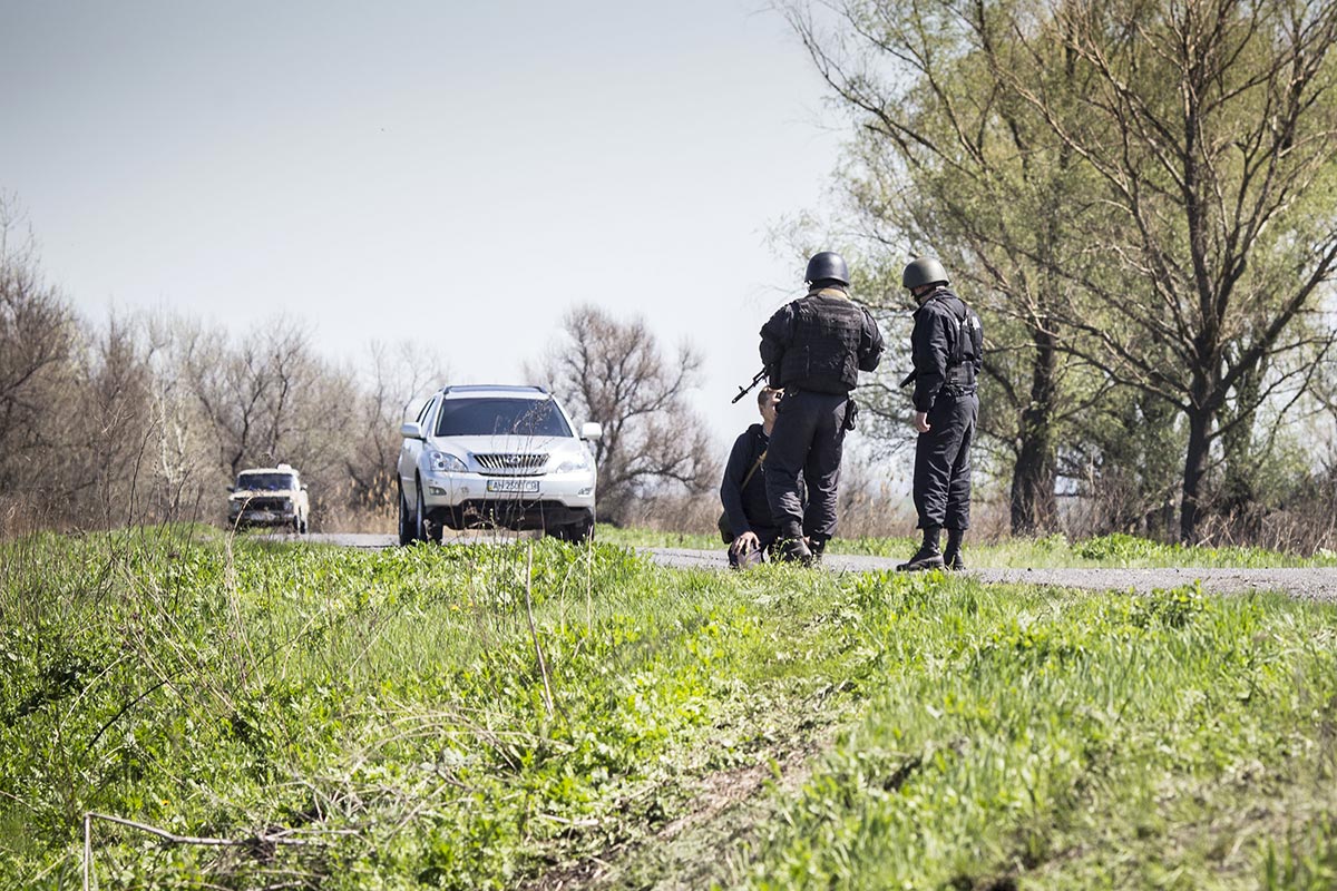 Ukrajinský check point na ceste do Sloviansku